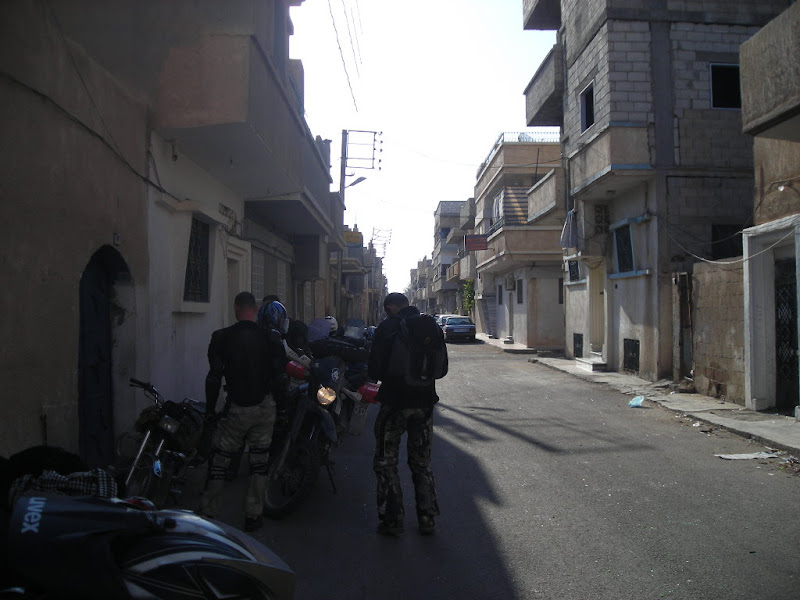 Około 15.00 zaczynamy znowu sie poruszać. Ustawiam na Garminie cel-granica i na strzałę przeciskamy się przez Damaszek. Drogowskazy się gubią, jakieś zamknięte drogi i objazdy. Nie wiem jakim cudem udaje mi się połączyć 3 rzeczy: przetrwać na ulicach Damaszku (kto był to wie , śledzić strzałę na GPSie i pilnować chłopaków z tyłu. Po długich bojach i totalnie zlani potem wydostajemy się z miasta na ostatnią prostą w keirunku Jordani... Lecimy raczej szybko, mijamy jakieś grupki innych bajkerów. Tym razem granica syryjska raczej szybko, jordańska gorzej... trafiamy na wkurw***ającego przełożonego i do tego w czasie modlitwy... musimy czekać aż skończą do zmroku.